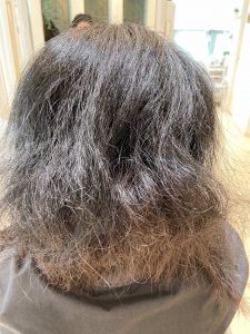 本日のお客様は全体的に髪の水分量が減り、乾燥しやすくパサパサ、チリチリとしやすい髪質でした。